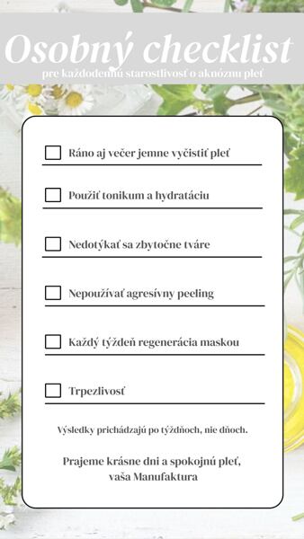 "Základom je kvalitný spánok, ľahká a vyvážená strava, menej cukru, dostatok vody, pohyb a tiež schopnosť dopriať si pauzu. Často práve pokoj a vnútorná rovnováha robia zázraky. Nemusíte robiť všetko naraz - začnite malými zmenami, v starostlivosti o pleť aj v štýle života. Pleť veľmi rýchlo spozná, keď ju počúvate. Keď jej dáte jemnosť, rovnováhu a rešpekt, vráti vám to krásou a zdravým vzhľadom."