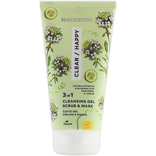 Čistiaci gél, peeling & maska 3v1 – hĺbkovo čistí, rozjasňuje a pripravuje pleť na ďalšiu starostlivosť.