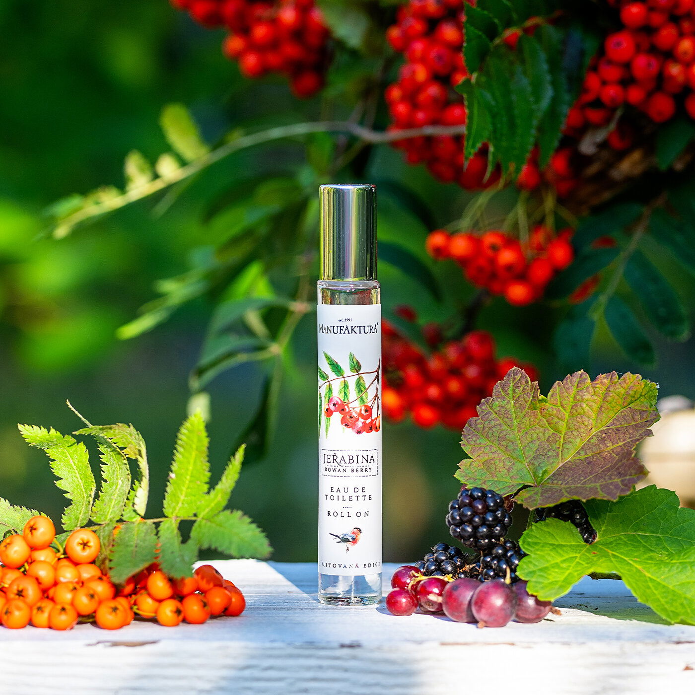 Iskrivá dámska EdT toaletná voda JARABINA je inšpirovaná kúzlom jesenných prechádzok, romantických alejí lemovaných zrejúcimi jarabinami, poslednými hrejivými lúčmi babieho leta a červeným ovocím zrejúcim v lesoch neďaleko. Ovocná, provokatívna, svieža voňavka v praktickom roll-on balení ideálnom do kabelky. Vhodná aj na palubu lietadla.