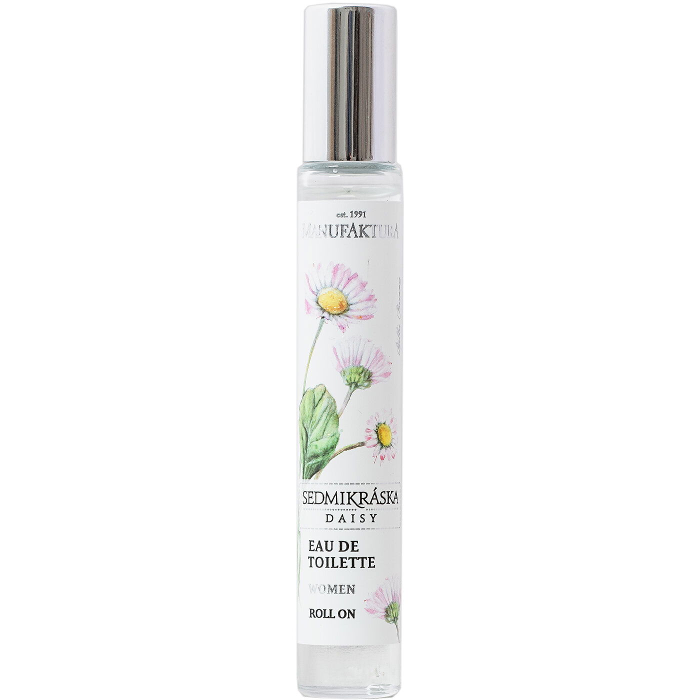 Vstúpte do každého dňa okúzlená ľahkosťou, čistotou a nežným rozpoložením. Dámska EdT toaletná voda Sedmokráska v praktickom roll-on obale predstavuje vôňu pre všetky ženy milujúce ľahké jemné vône, ktorých sa nedá „prevoňať“. Nežná vôňa sedmokrásky s púdrovými tónmi, zelenými a vodnými akordmi, doplnená kvapkou ruže, jazmínu a vanilky vás svojou nevinnosťou očarí natoľko, že s ňou budete chcieť dávať aj dobrú noc… Náš tip! Dokonale jemná voňavka pre novopečené mamičky, ktorých čuch je citlivejší.