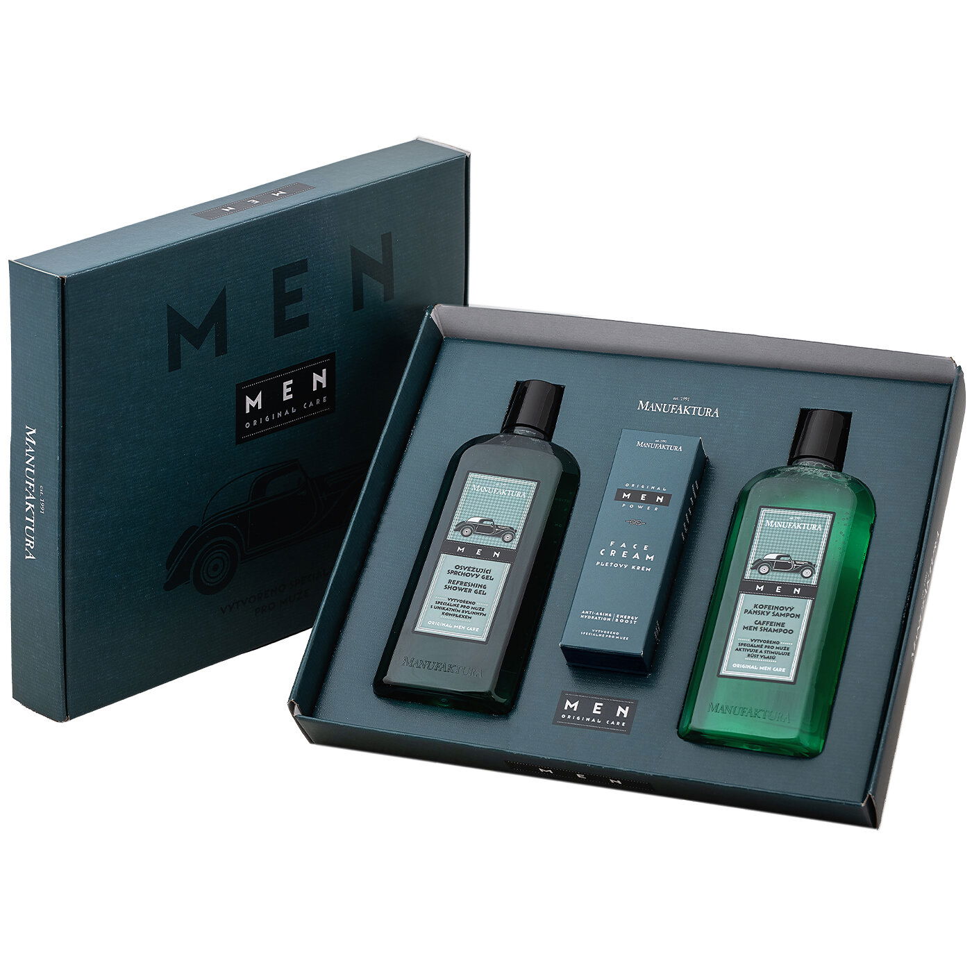 Elegantný darčekový balíček z pánskej kozmetiky MEN ORIGINAL ponúka všetko potrebné na každodennú starostlivosť. Darčeková sada pre mužov kombinuje vysoko prírodnú receptúru s bylinnými výťažkami, vyvinutú pre špecifické potreby mužskej pokožky a vlasov, s príjemnou osviežujúcou vôňou, elegantným dizajnom a jednoduchým použitím.