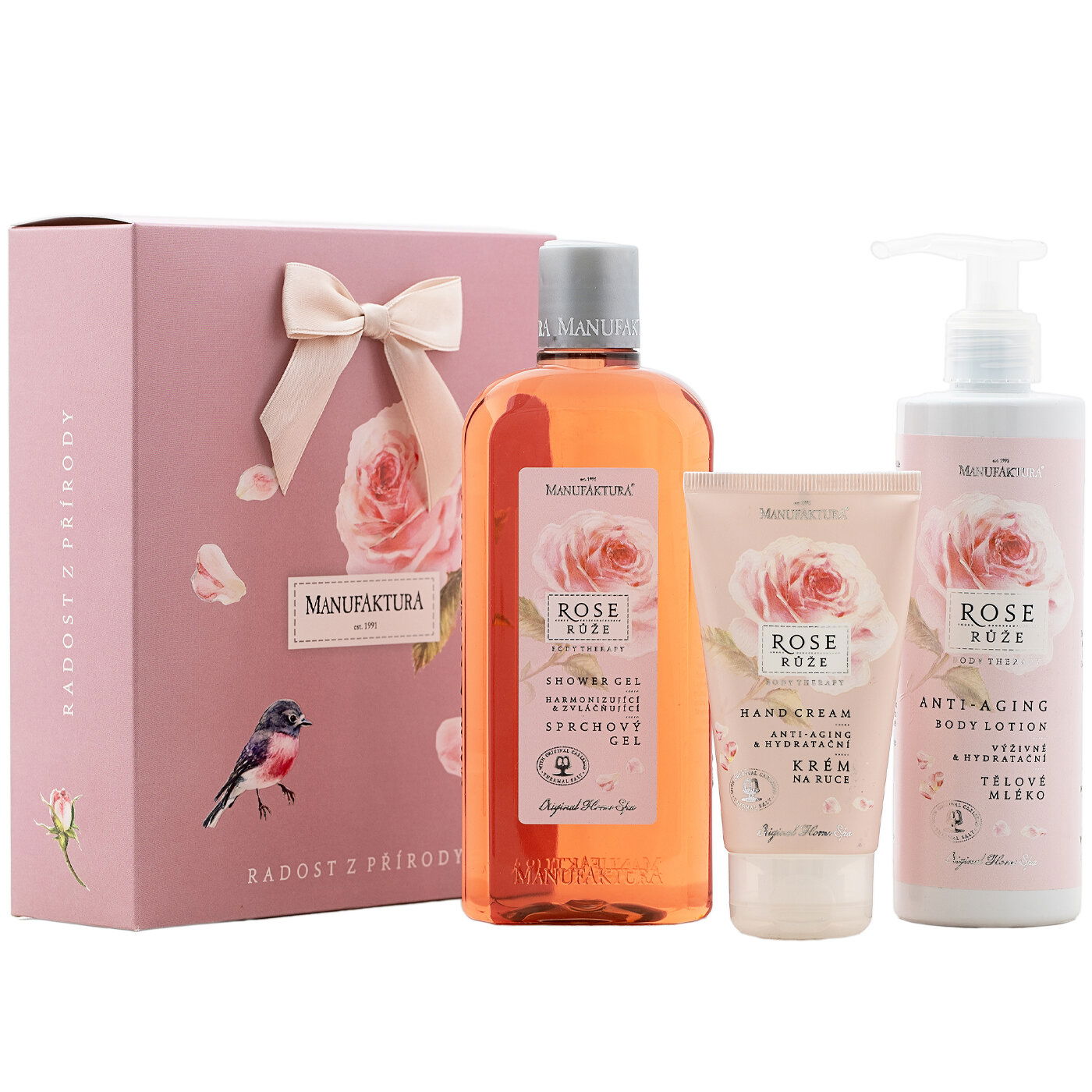 Darujte osvedčenú kombináciu obľúbených produktov pre omladzujúcu starostlivosť o telo a ruky. Spojením romantickej ruže a karlovarskej žriedlovej soli vznikla luxusná telová kozmetika na regeneráciu, hydratáciu a zjemnenie pokožky s nezameniteľnou vôňou kráľovnej kvetín. Ošetrujúci darčekový balíček inšpirovaný úžasnou tradíciou českého kúpeľníctva poteší každú milovníčku elegancie, ružových kvetov a romantiky.