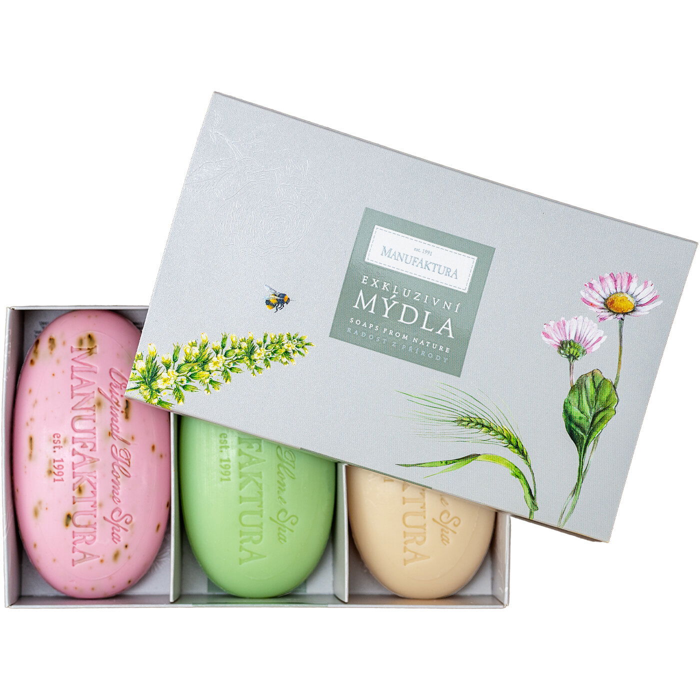 Darčeková sada TRIO prírodných mydiel Lúka, Medovka & Ruža