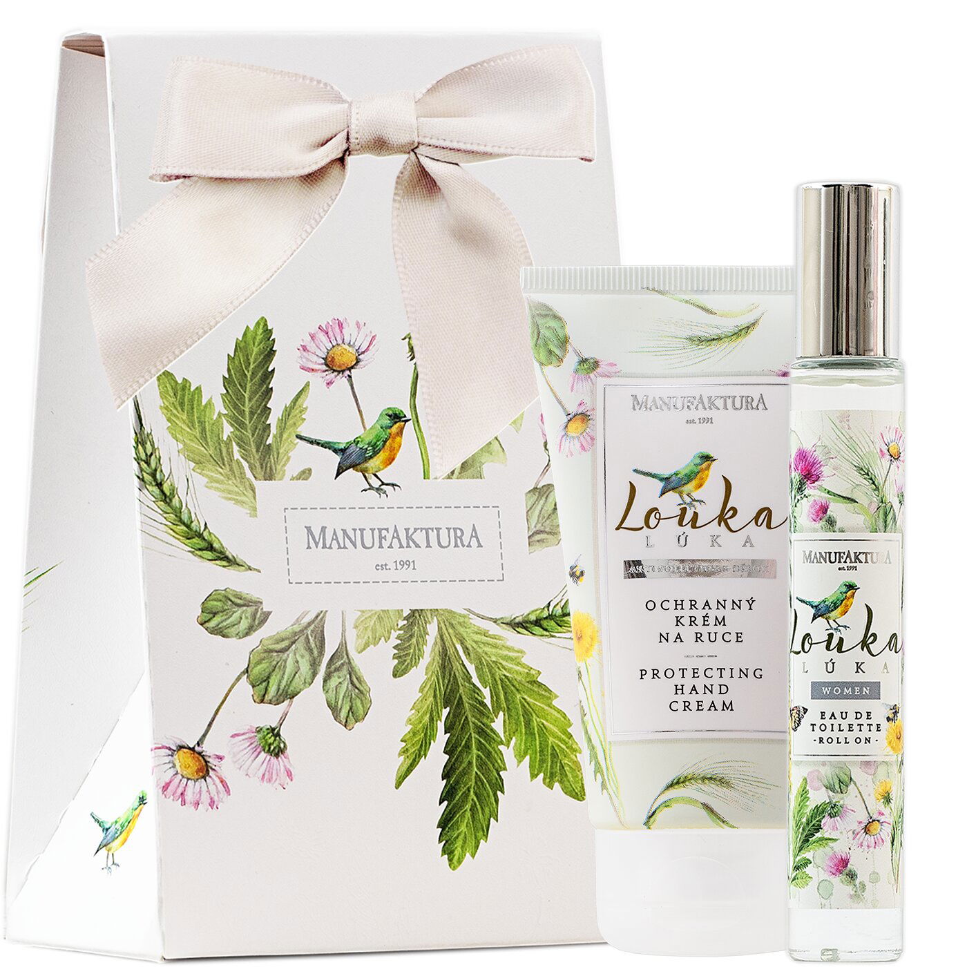 Darujte voňavú radosť z prírody! Mimoriadne obľúbená kolekcia Lúka je skvelým tipom pre ženy všetkých vekových kategórií. Miniatúra EdT v praktickom roll-on aplikátore v sebe ukrýva nádhernú esenciu kvitnúcich jabloní, lúčnych kvetov a čistoty, regeneračný krém na ruky obsahuje unikátny anti-pollution komplex z českých a slovenských bylín, ktorý poskytuje hydratáciu, rovnováhu, detox a ochranu.