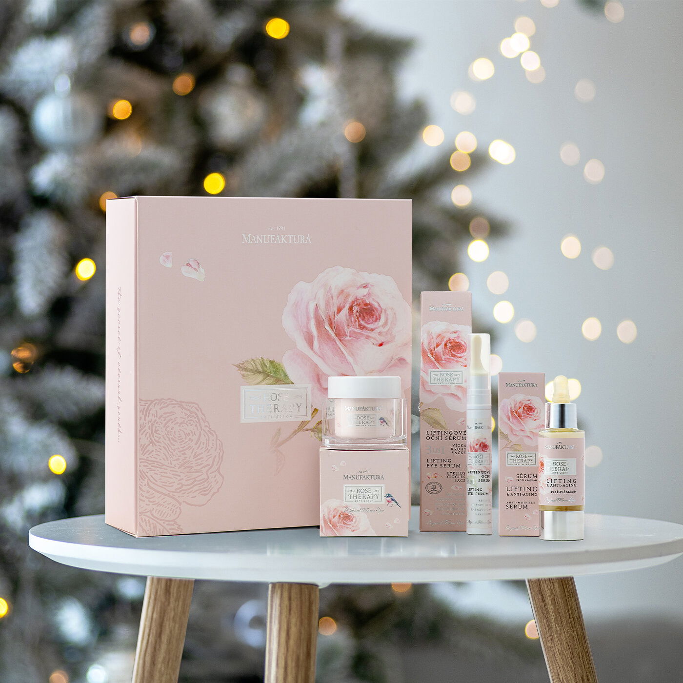 Hľadáte exkluzívny darček pre ženu alebo túžite po luxusnom rituáli krásy len pre seba? Darujte (si) výnimočnú kompletnú starostlivosť o pleť na deň aj noc s nežným balíčkom z ruže! Pravý ružový olej, unikátny anti-aging komplex, kyselina hyalurónová, hexapeptid, retinol alebo koenzým Q10… Vzácne ingrediencie a aktívne látky, ktoré sa ukrývajú v produktoch v tomto luxusnom balíčku pre ženy, poskytujú účinné omladenie, redukciu vrások, dlhodobú intenzívnu hydratáciu a okamžitý lifting tváre, očného okolia i dekoltu. Ideálny darčekový balíček, ktorý ráno pleti dopraje prebudenie, rozjasnenie a hydratáciu a večer jej zaistí nočnú regeneráciu a omladenie.
