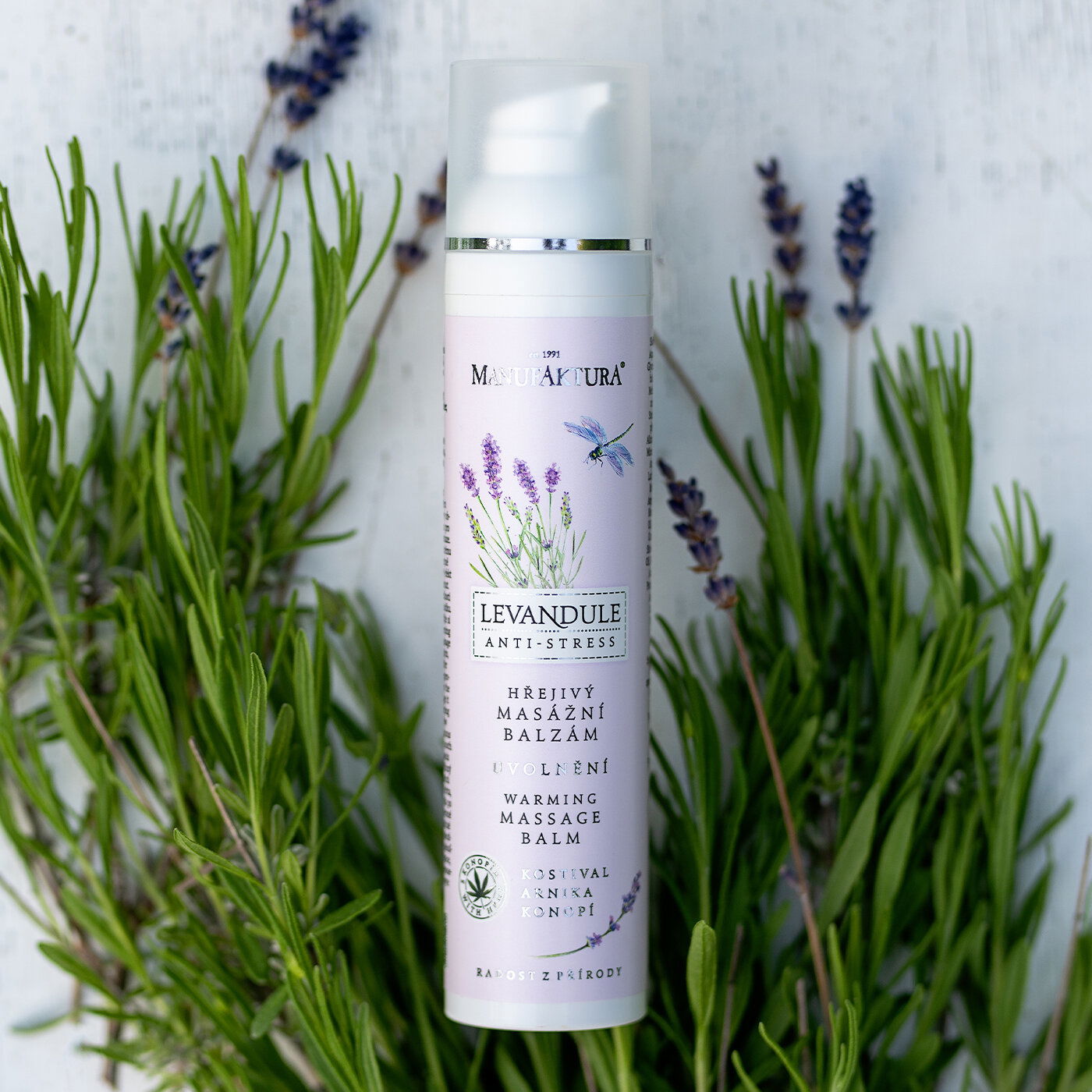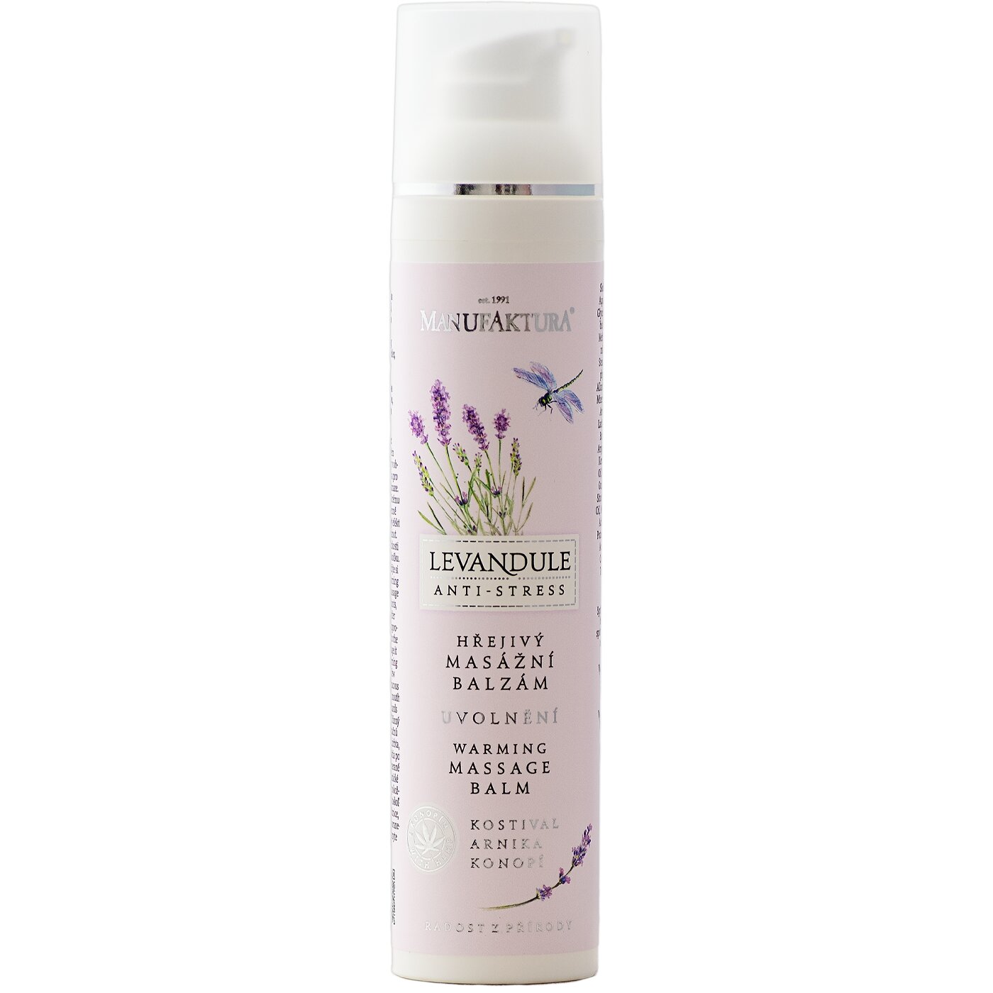 Aqua, Caprylic/Capric Triglyceride, Glycerin, Isopropyl Myristate, Cannabis Sativa Seed Oil, Polyglyceryl-3 Methylglucose Distearate, Macadamia Ternifolia Seed Oil, Glyceryl Stearate, Vanillyl Butyl Ether, Symphytum Officinale Root Extract, Allantoin, Lavandula Angustifolia Oil, Mineral Salts (Carlsbad Natural Salt), Arnica Montana Flower Extract, Lactic Acid, Butyrospermum Parkii Butter, Cetearyl Alcohol, Prunus Amygdalus Dulcis Oil, Avena Sativa Kernel Oil, Propylene Glycol, Olus Oil, Squalane, Panthenol, Xanthan Gum, Squalene, Tocopherol, Beta-Sitosterol, Eucalyptus Globulus Leaf Oil, Maltodextrin, Beta-Glucan, Citric Acid, Parfum, Sodium Benzoate, Potassium Sorbate, Linalool, Linalyl Acetate, Lavandula Oil/Extract, Camphor, Beta-Caryophyllene, Terpineol, Limonene, Geranyl Acetate, Pinene