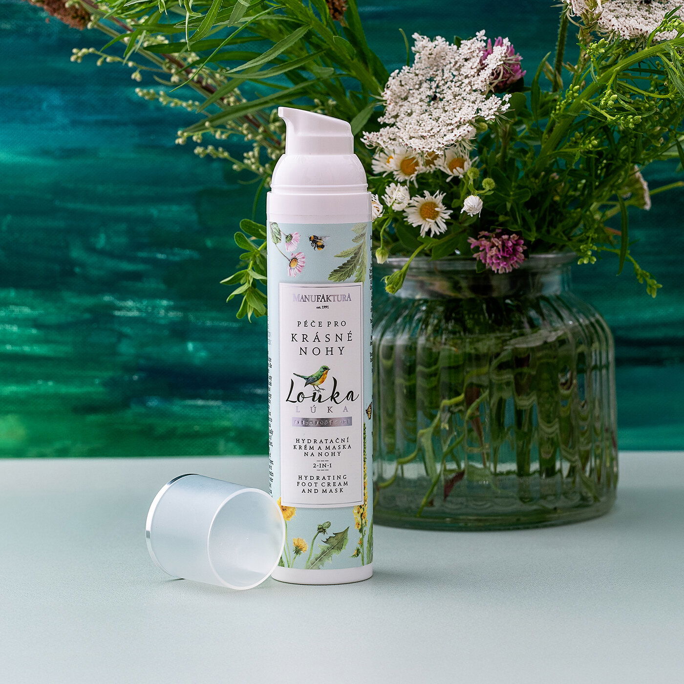 Krásne a udržované nohy sú našou vizitkou. Hľadáte najlepší krém na nohy? Stavte na prírodu! Osviežte, zregenerujte a zvláčnite svoje namáhané chodidlá silou byliniek zbieraných na lúke. Tvrdé päty a suchá pokožka na nohách budú minulosťou a vy sa budete môcť tešiť z jemných a hebkých chodidiel. Intenzívna starostlivosť o nohy bohatá na prírodné výťažky, rastlinné oleje, kyselinu hyalurónovú, panthenol alebo ureu funguje ako výživný, reparačný a hydratačný krém na nohy a popraskané päty a maska 2v1. Každá aplikácia je ako voňavá prechádzka po rozkvitnutej lúke – príjemne osviežujúca a plná prírodnej energie.