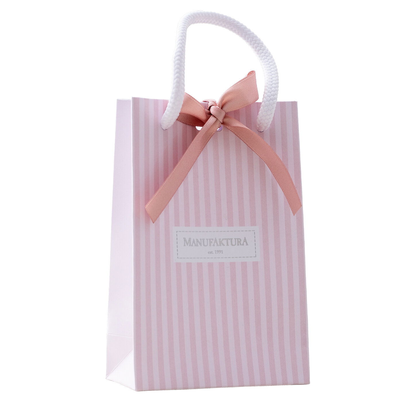 Luxusná ružová taštička premení aj drobný darček na výnimočnú pozornosť. Decentný prúžkovaný dizajn, saténová mašľa v púdrovom odtieni a mäkké pletené ušká pôsobia elegantne a jemne romanticky. Ideálna voľba, keď chcete, aby už samotné balenie darčeka vyvolalo radosť a očakávanie.