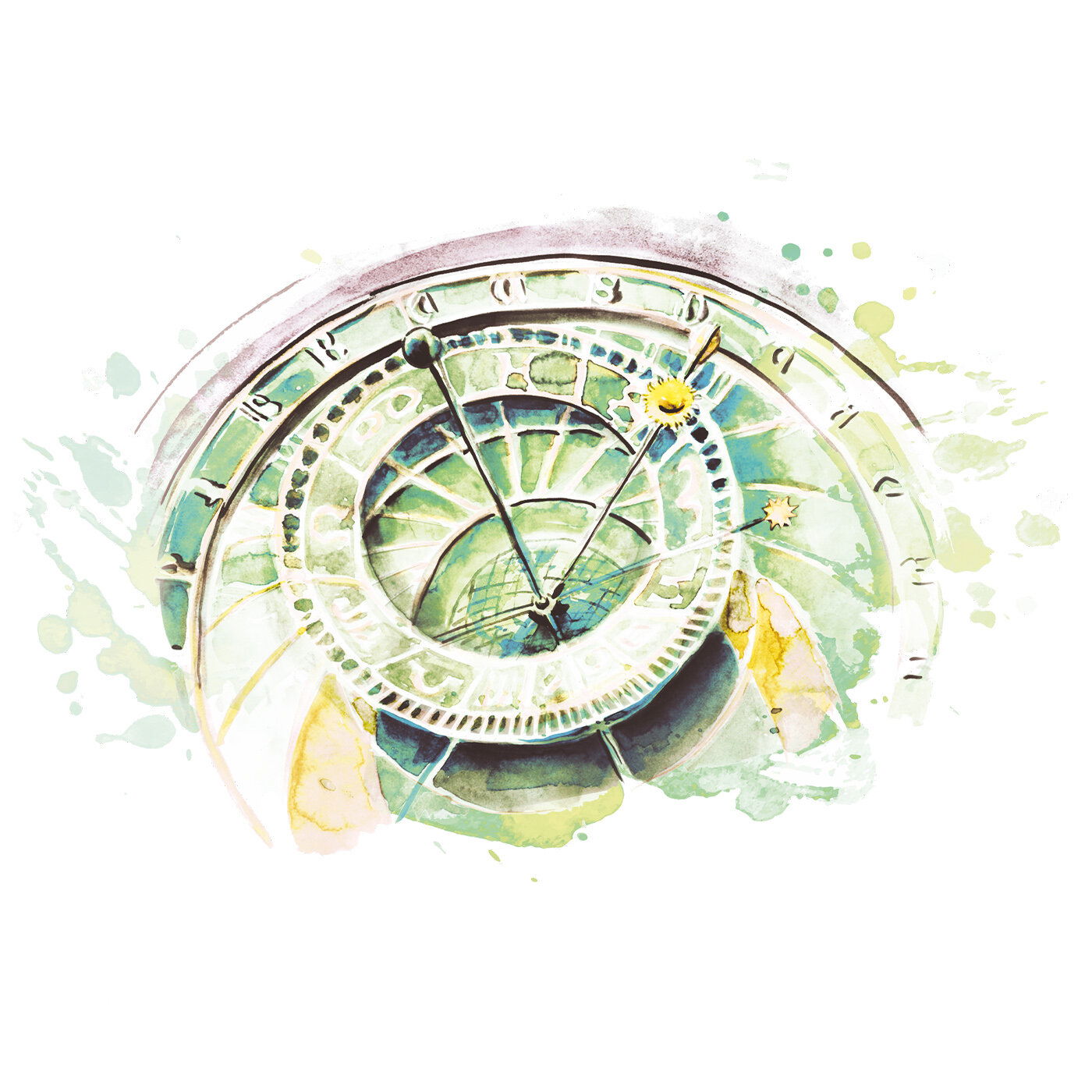Signovaná autorská tlač 21x21 s motívom pražského Orloja od výtvarníčky Diany Delevovej, tlačená na kvalitný grafický papier priamo pod dohľadom autorky.