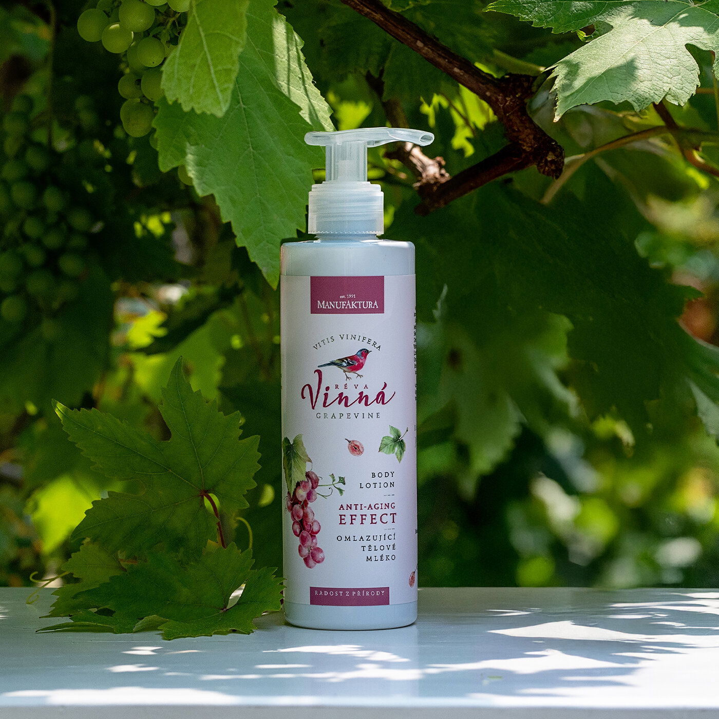 Vo víne je krása! Anti-aging, revitalizujúce a spevňujúce telové mlieko s hroznovým, ovseným a mandľovým olejom, výťažkom z vínnej révy, beta-glukánom a panthenolom dopraje suchej pokožke hebkosť, vláčnosť a hydratáciu. Luxusné telové mlieko s novou vylepšenou receptúrou Vás bude rozmaznávať jemným dotykom s iskrivo sviežou ovocnou vôňou.