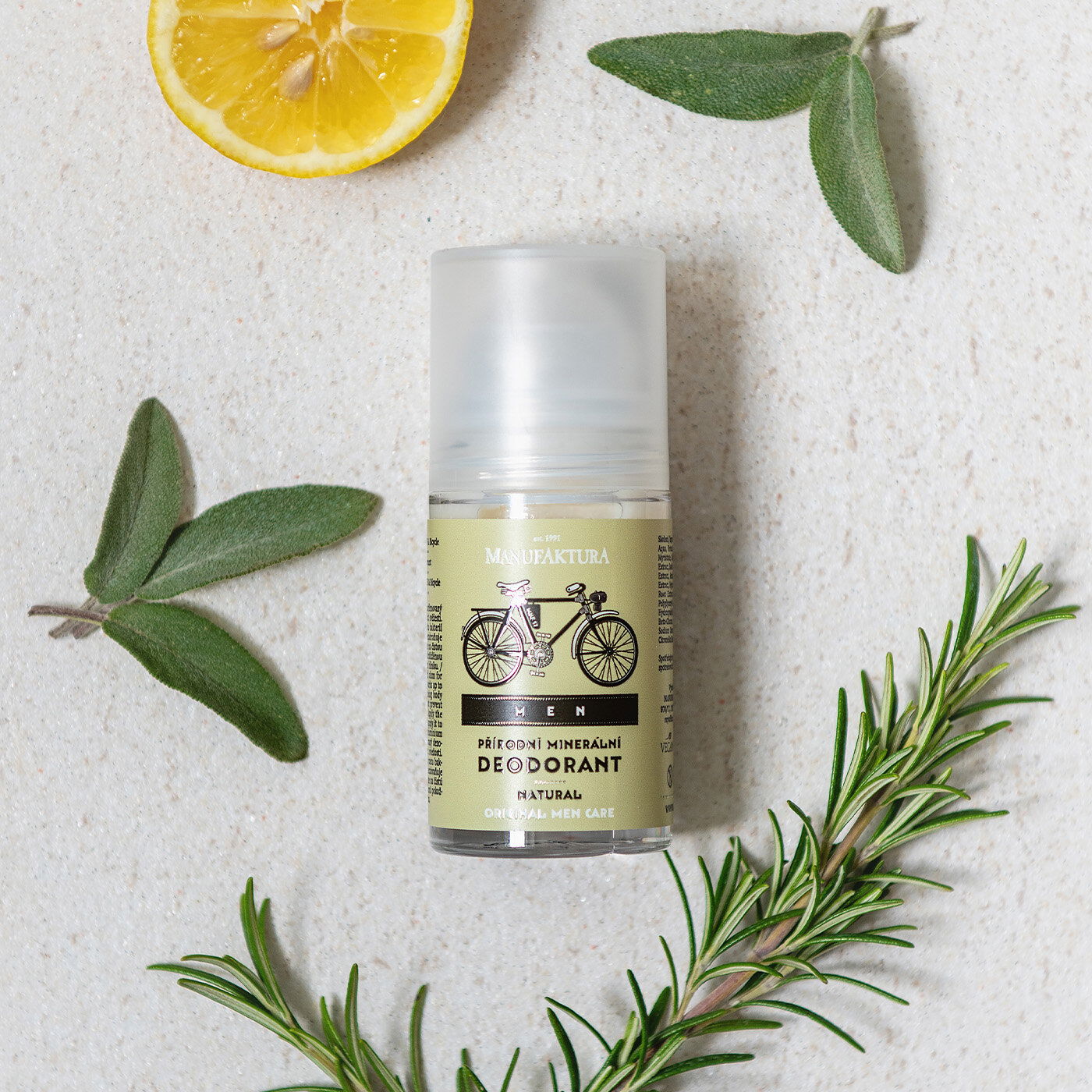 Unikátny pánsky dezodorant s kamencom a výťažkami z bylín a lišajníka ocenia muži nielen počas potuliek na bicykli. Jeho moderné prírodné zloženie nebráni zdravému prirodzenému procesu potenia a necháva pokožku dýchať. Zabraňuje však rastu baktérií, ktoré spôsobujú nežiaduci zápach, a zaistia tak pocit sviežosti až po dobu 24 hodín! Zelená vôňa aromatických bylín spolu s hrejivými tónmi dreva a iskrivými notami citrusov príjemne prevonia pokožku a dodá pocit sebavedomia. Minerálny dezodorant pre mužov je skvelým spoločníkom pri športových aktivitách, výletoch do prírody, pracovných cestách aj romantických večeroch vo dvojici.