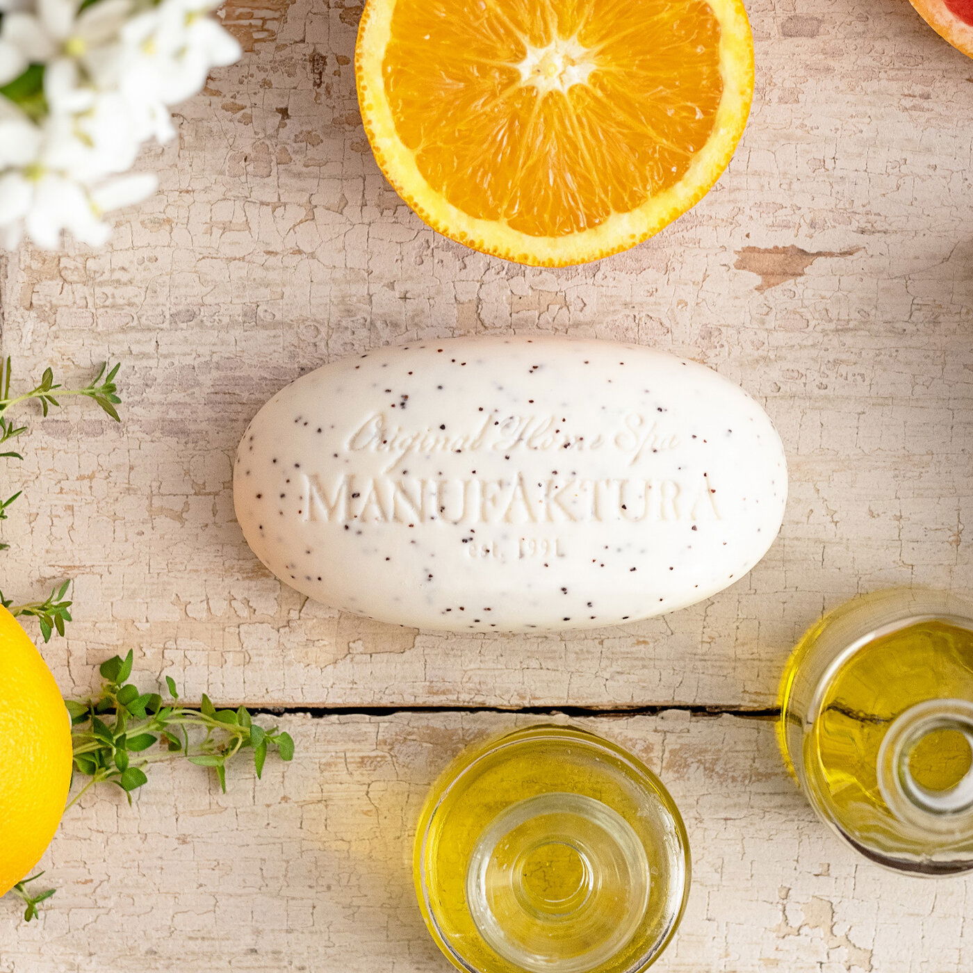 Jemne pomleté marhuľové škrupiny prepožičiavajú mydlu príjemný a účinný peelingový efekt. Bohatá pena zanechá pokožku čistú, dokonale rozmaznanú, hodvábnu a krásne prevoňanú osviežujúcou citrusovou vôňou pomaranča a grepu.