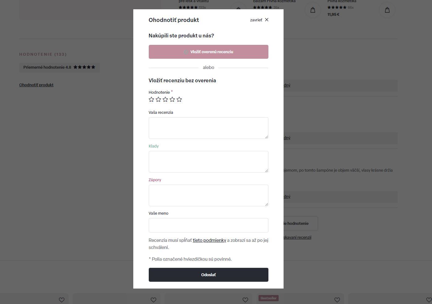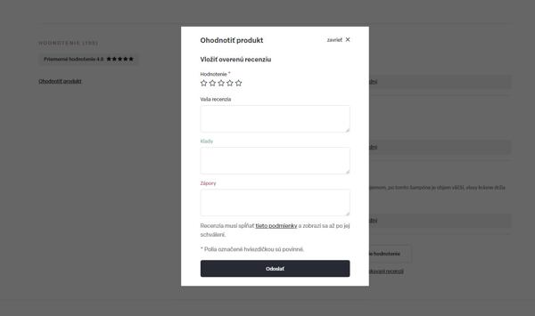 Po kliknutí sa objaví formulár, v ktorom vyplníte svoje meno a priezvisko, počet hviezdičiek, klady či zápory alebo je možné popísať svoju osobnú skúsenosť podrobnejšie. Kliknite na tlačidlo ODOSLAŤ a po schválení bude vaša recenzia verejná.