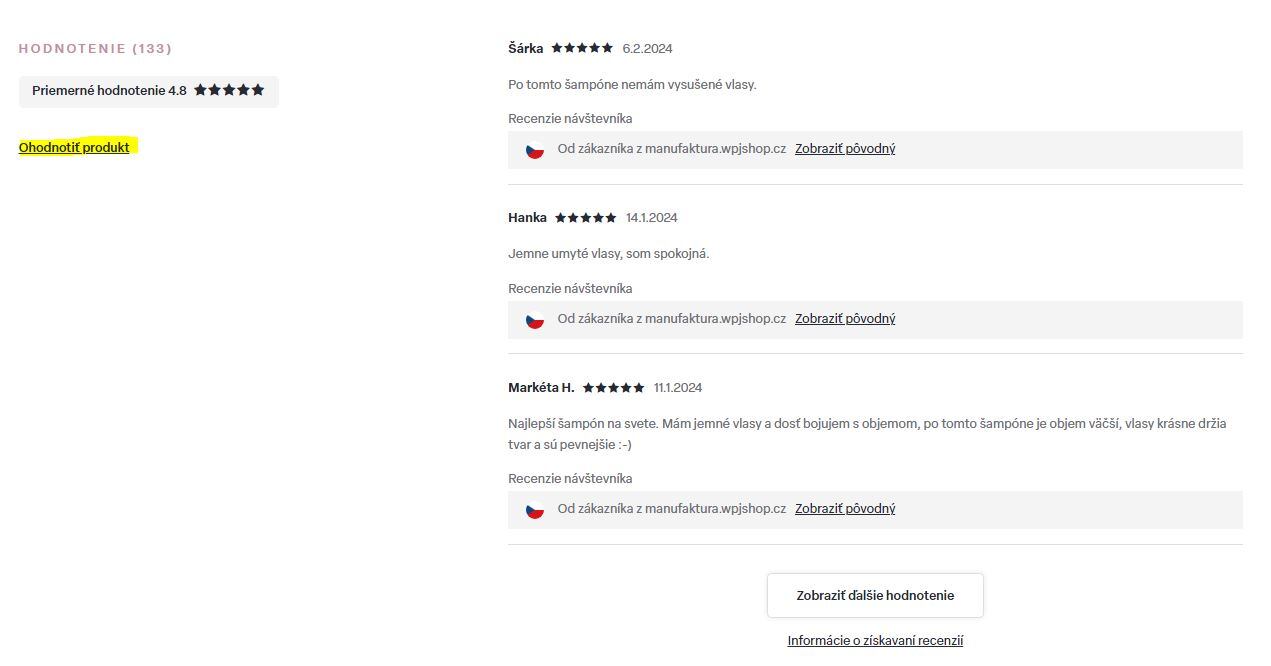 Na stránke každého výrobku nájdete v dolnej časti pod fotografiou alebo videom blok HODNOTENIE.