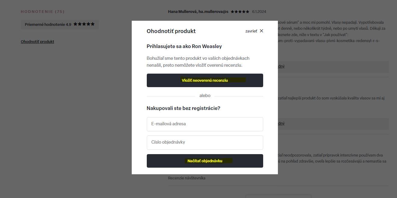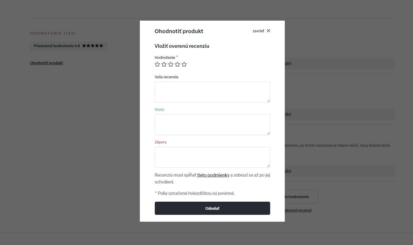 V ňom tlačidlo OHODNOTIŤ PRODUKT.