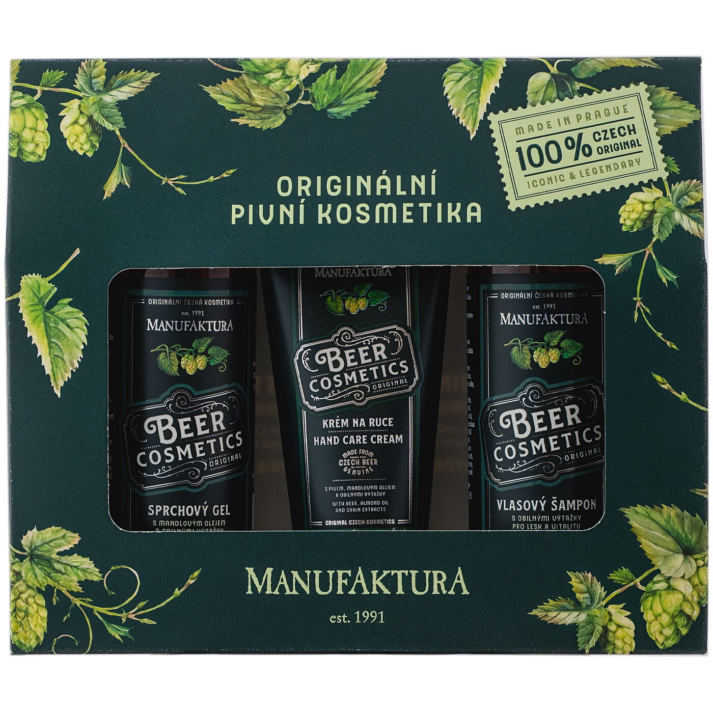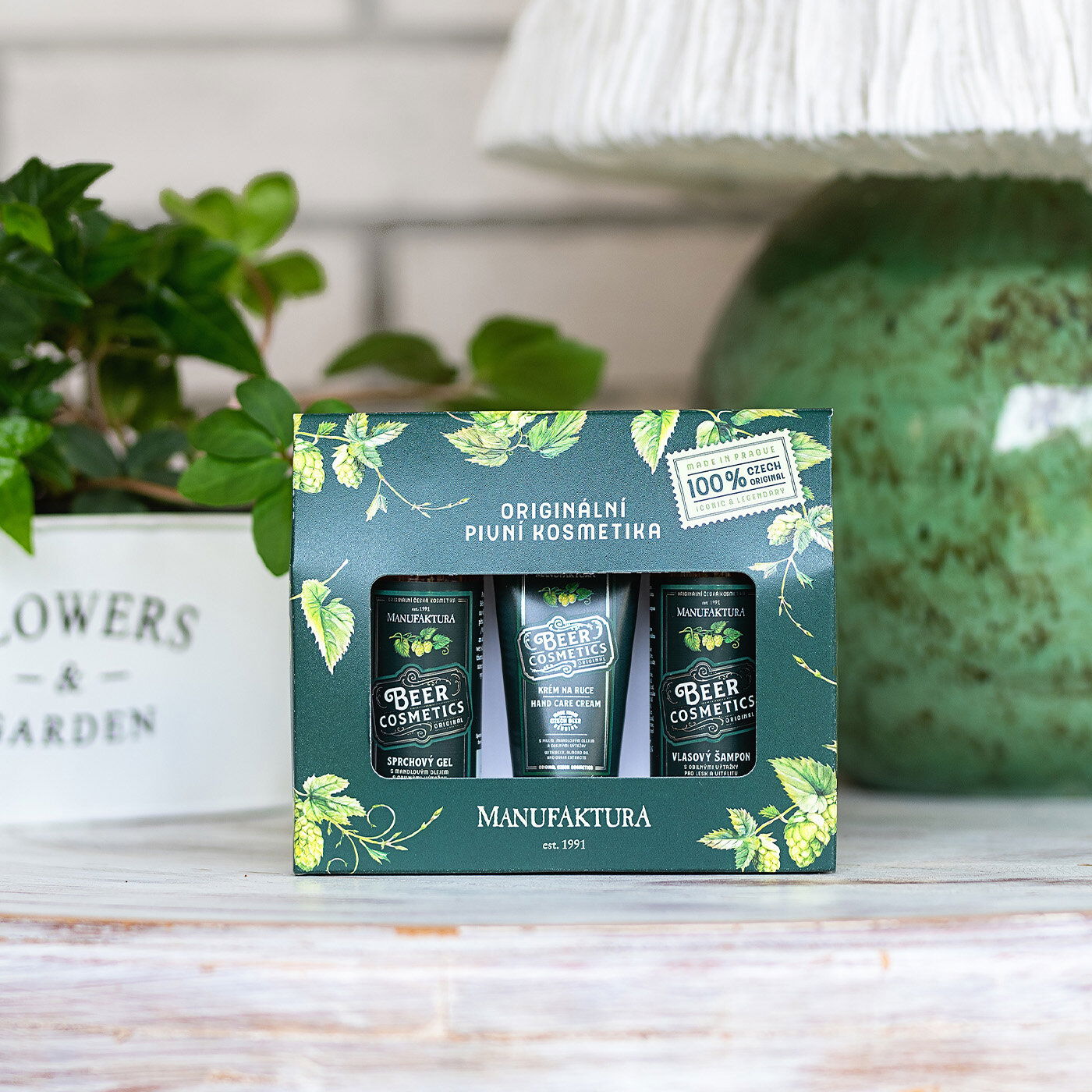 Cestovná kozmetika s pravým českým pivom všade s vami! Originálny set 3 miniatúr ponúka výber bestsellerov z obľúbenej pivnej kozmetiky. Legendárny šampón na vlasy s vysokým obsahom pravého českého piva, vhodný pre všetky typy vlasov, dodá lesk a vitalitu a napomáha regenerácii. Osviežujúci pivný sprchovací gél zanechá pokožku jemnú a hydratovanú a ošetrujúci krém na ruky je ideálny pre výživu a ochranu pokožky. Všetky produkty starostlivosti o vlasy, telo a ruky sú sprevádzané výnimočnou delikátnou horko-sladkou vôňou. Náš tip: Ideálny aj ako originálny lokálny darček z Českej republiky!