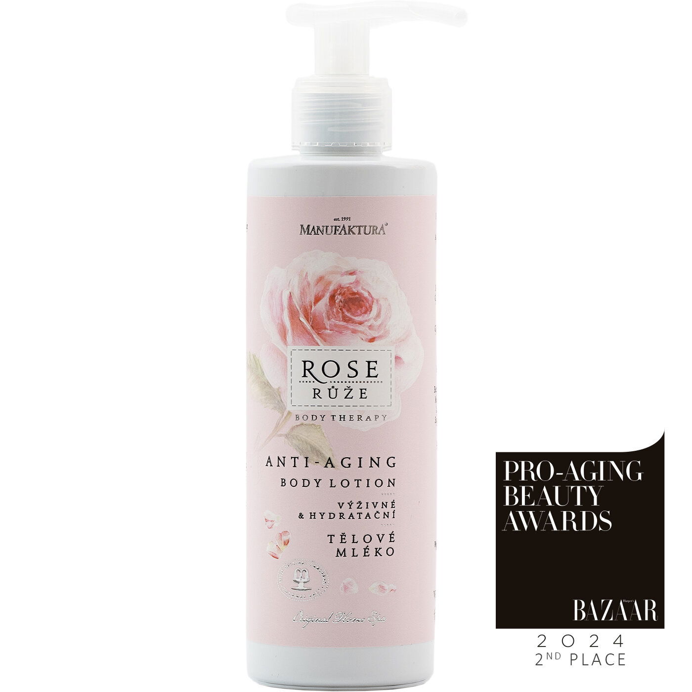 Anti-aging telové mlieko Ruža získalo 2. miesto v kategórii Starostlivosť o telo – POPULAR v prestížnej súťaži Harper‘s Bazaar Pro-aging Beauty Awards.